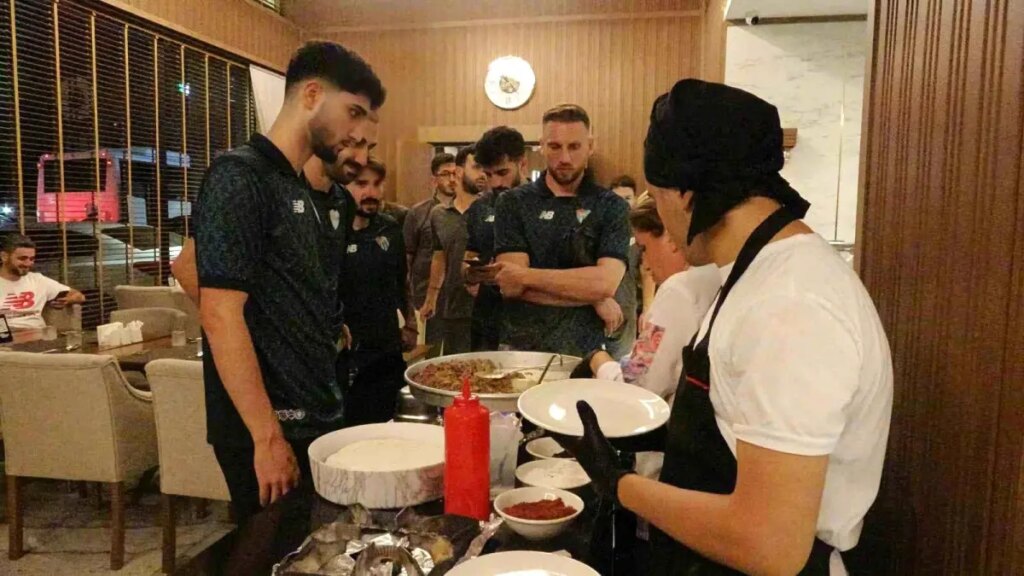 Bursaspor, Mersin deplasmanında aldığı galibiyeti, konakladıkları Park Dedeman Mersin Marina Oteli’nin tantuni ikramıyla kutladı.