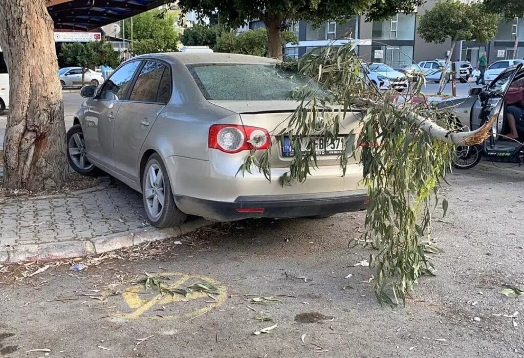 Mersin’in Faziletli ilçesinde kırılan ağaç kolu arabaya ziyan verdi.