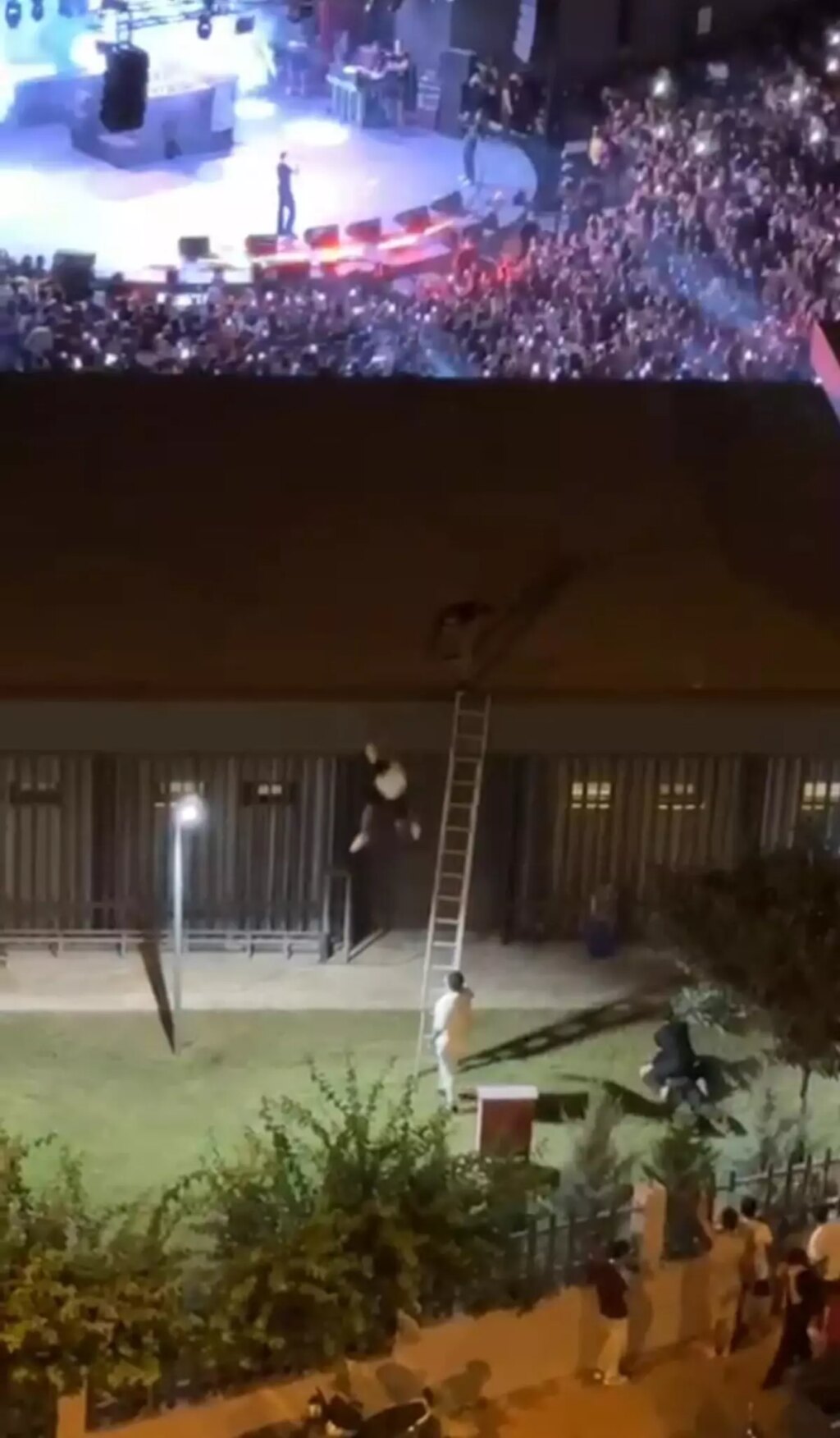 MERSİN’de düzenlenen konseri, binanın çatısına çıkarak izlemeye çalışan gençlerden biri aşağı atıldı, başkası darbedildi. Cep telefonuyla görüntülenen olayla ilgili Cumhuriyet Başsavcılığı soruşturma başlattı.