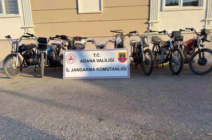 Adana'da jandarma grupları, plakasız ve şasesi kazınmış 8 motosiklet ele geçirirken, 6 şüpheliyi de...