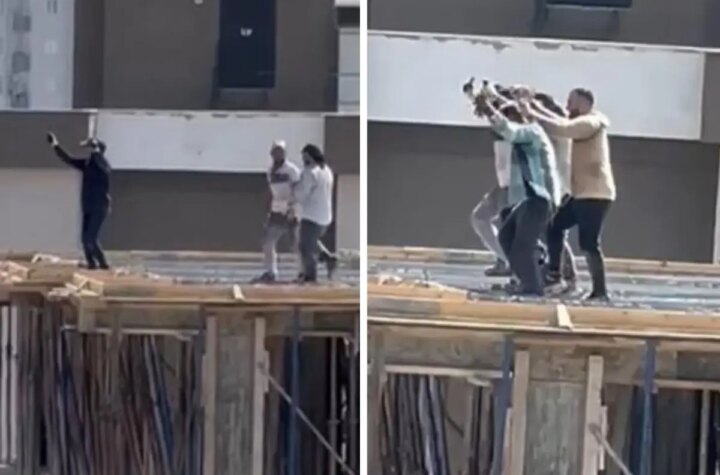 Adana'da bir inşaatın 10. katında çalışan çalışanlar, arabadan gelen müzik sesiyle halay çekmeye başladı....